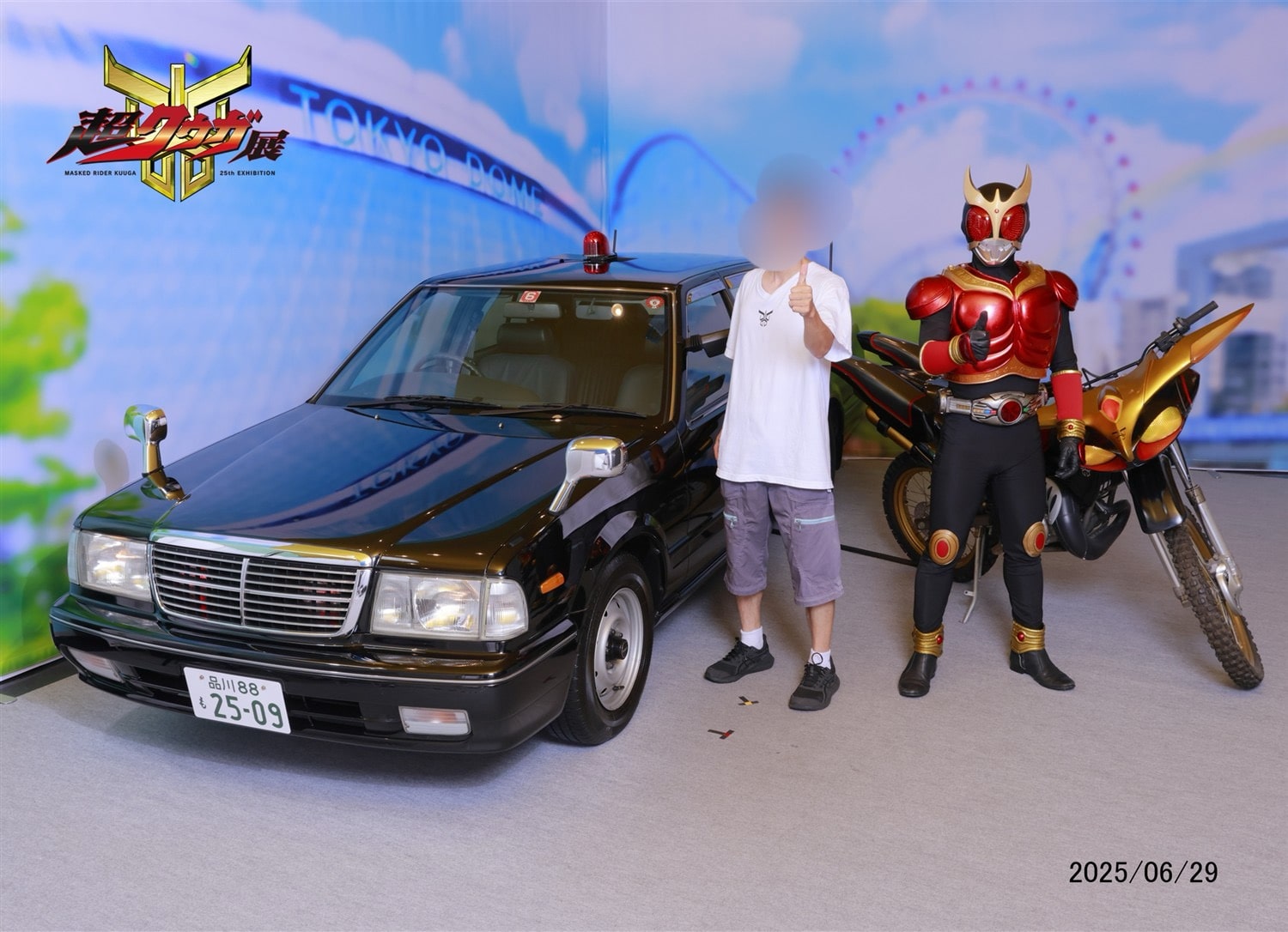 クウガ、BTCS2000、一条さんの車とセットで撮影。自分のポージングは自由ということだったので、サムズアップで撮ってもらった。